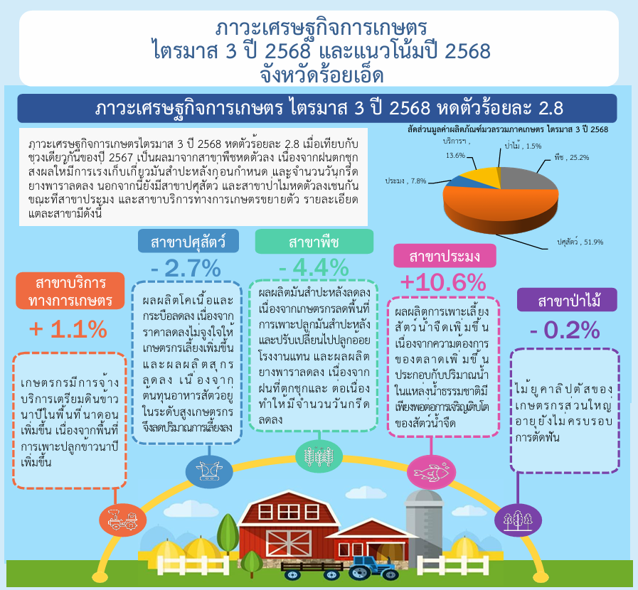 รายงานภาวะเศรษฐกิจการเกษตรจังหวัดร้อยเอ็ดไตรมาส 3 ปี 2568 และแนวโนม้ปี 2568